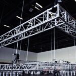 Montages droits, circulaires ou carrés, réalisés avec palans de levage pour une installation précise, sécurisée et impressionnante.